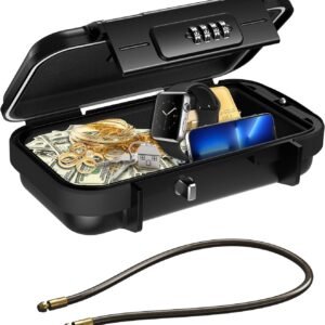 AMIR Portable Safe Box for Travel, Combination Security Case LockBox with Code, Waterproof Anti-Theft Mini Travel Safe Box with Removable Chain, Portable Lock Box for Car Hotel Personal Items Safe